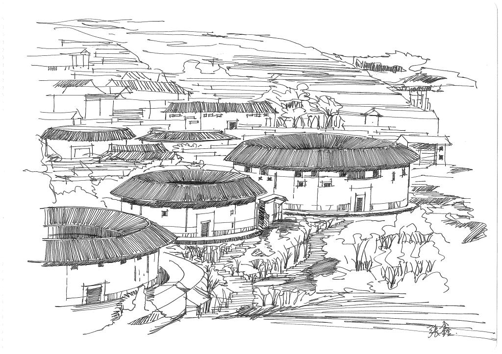 手绘作品《客家印象》