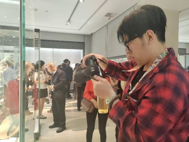 4月15日上午,今天的学习目标是提高学生对图案纹样、造型美感、传统线条的组织与运用的分析与收集,为学生后期的写生与创作奠定坚实基础。景德镇中国陶瓷博物馆作为世界顶级的陶瓷博物馆之一,馆内藏品丰富,跨越唐代到现代的各个历史时期,展示了陶瓷工艺的辉煌与演变。画片中的各种元素汇集了古人对于画面艺术的理解。在教师的指导下学生从明洪武时期到清末宣统时期瓷器中了解到明青花到清青花瓷器中笔触的变化,胎土的差异、颜料的运用,青花、斗彩、粉彩的色阶变化以及窑变中的机理和艺术性。学生通过与老师之间的互动,打破以往局限性的审美角度与认知,其中包括传统画片中的意象造型、构图中的正型与副型的艺术处理、灵感来源等。
