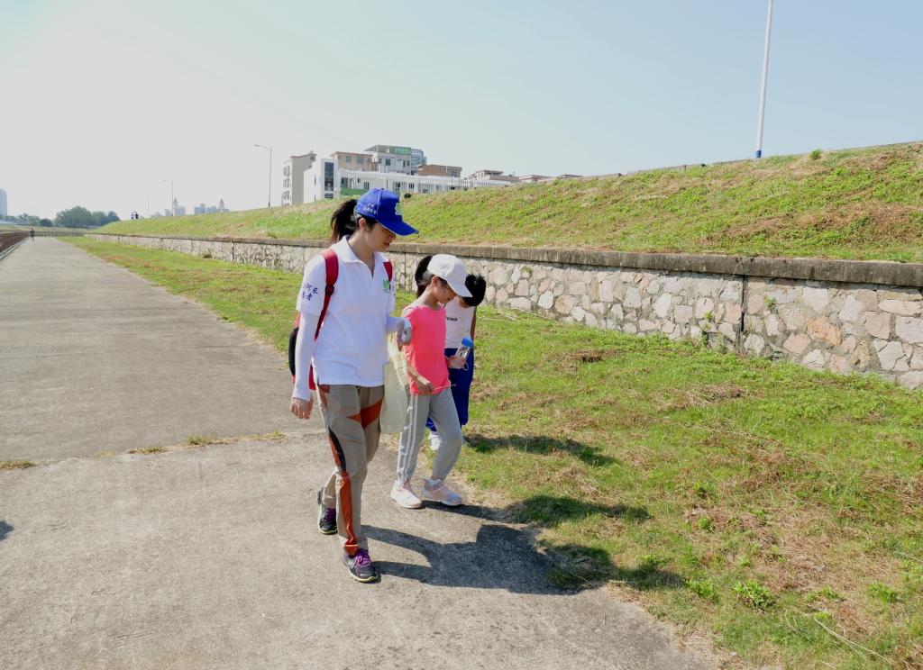 经过多次走巡,可见田美河河涌水位较低、偶有生活垃圾及油污漂浮,有保洁员在河道内清理垃圾。李丹艳老师通过现场走巡结合保护环境、创建绿色家园的知识,教导孩子们:如果我们都自觉把垃圾分类好投放到相应的垃圾箱内,可以减少保洁员的工作量,同时避免他们清理河道垃圾时遇到危险。