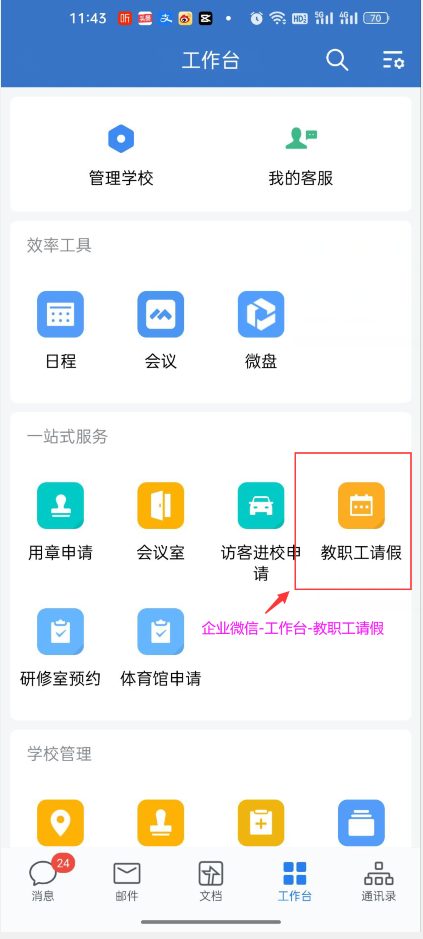 为进一步优化请假审批业务,逐步解决教职工“一校两区”现场审批不便等问题,提高管理效率和服务质量。经前期试用和调整,现学校正式全面启用企业微信请假线上审批流程,原有线下审批流程同时废止。现将有关事项通知如下: