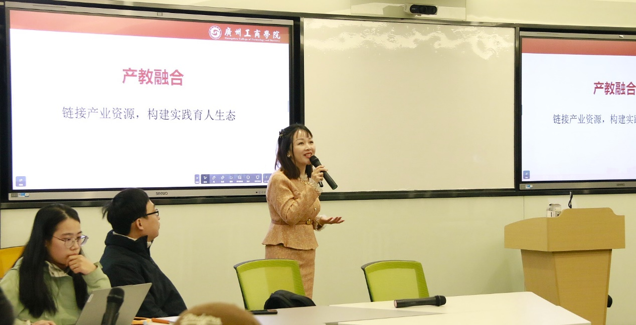 随后,教研室主任曹明香副教授重点介绍了本年度产教融合工作取得的成果,并对未来发展方向作出展望。她强调,市场营销专业将继续深化与时尚产业、品牌企业的合作,进一步推动产教融合,打造具有广工商特色的市场营销人才培养模式,助力专业建设成为学校特色鲜明的“王牌”项目。