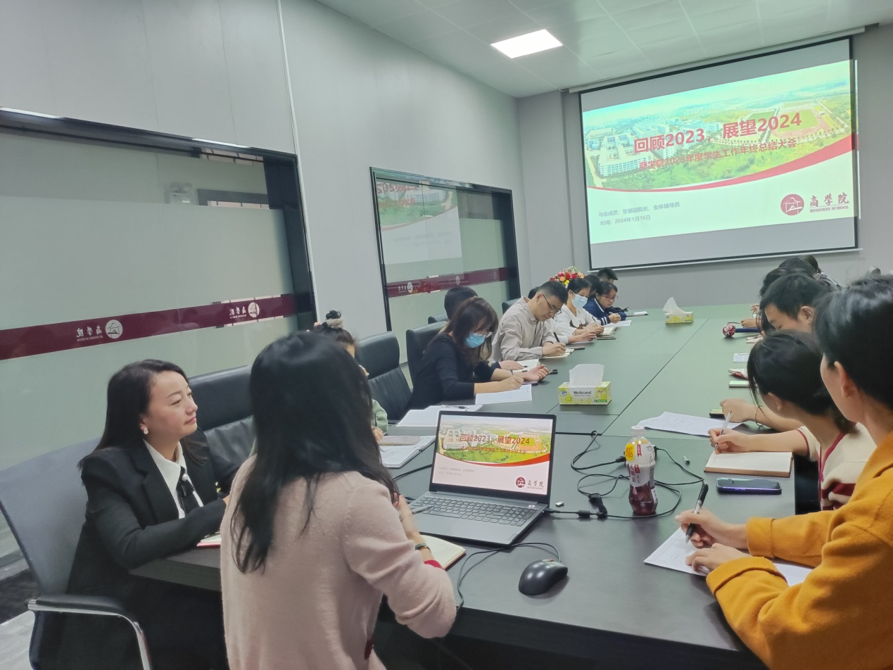 为更好梳理2023年度学生工作开展情况以及更好迎接2024新年度的重点工作,2024年1月17日,商学院于618会议室召开2023年学生工作年终总结大会。分管学生工作张娜副院长以及全体辅导员出席本次会议。会议由学工办主任黄彩微主持。