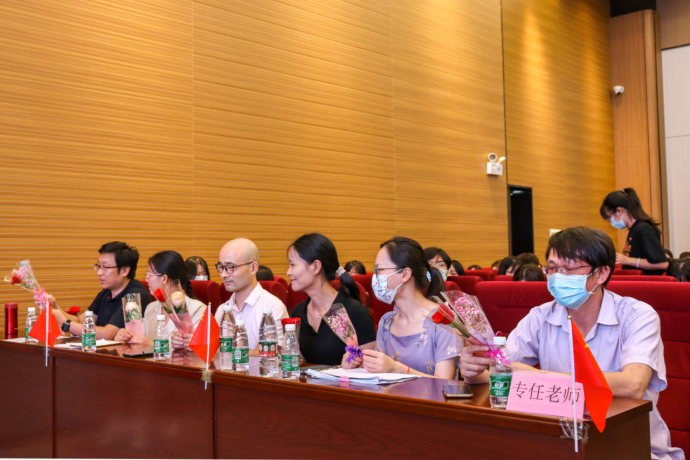 党课最后的特殊环节,毕业生党员代表为老师们献花,感谢老师们四年的谆谆教诲,花香谢师恩。在求学路上,老师是引路的火把,照亮迷途的黑暗,找到正确的方向。老师们总是无言地为同学们带来最详细的讲解,最耐心的解答。今日,同学们怀着一份真挚的感恩之情,用美丽的鲜花来向老师表达同学们内心深处最真实的情感,向他们说一句:“老师,谢谢您!您辛苦了!”
