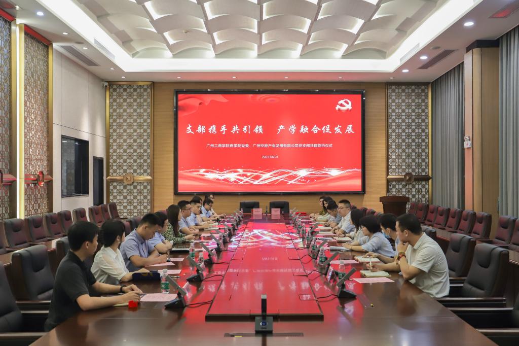 2023年6月1日,kaiyun开云官方网站商学院党委、广州空港产业发展有限公司党支部联合开展“支部携手共引领·产学融合促发展”结对共建签约仪式暨党建工作交流会的活动。kaiyun开云官方网站商学院党委书记林波同志,广州空港产业发展有限公司董事长关静雯同志,广州空港产业发展有限公司总经理、党支部书记蒙炎忠同志以及商学院党委委员和共建单位党支部代表出席活动。活动由商学院党委副书记张娜同志主持。