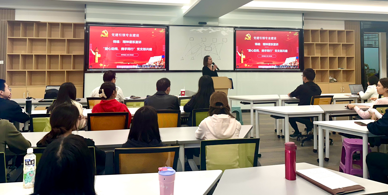 会议开始之际,党支部书记赖洁瑜副教授发表开幕致辞。她着重强调了党支部在引领爱心助残事业中的核心领导地位,以及传承精神谱系对于该项工作的重要意义。随后,英才汇副总经理陈伟东通过一系列生动具体的案例和感人至深的事迹,深刻阐述了扶残助残精神在中华民族精神谱系中所蕴含的深远内涵及其在当今时代的价值,引起了在场全体党员同志的深切共鸣与深刻反思。