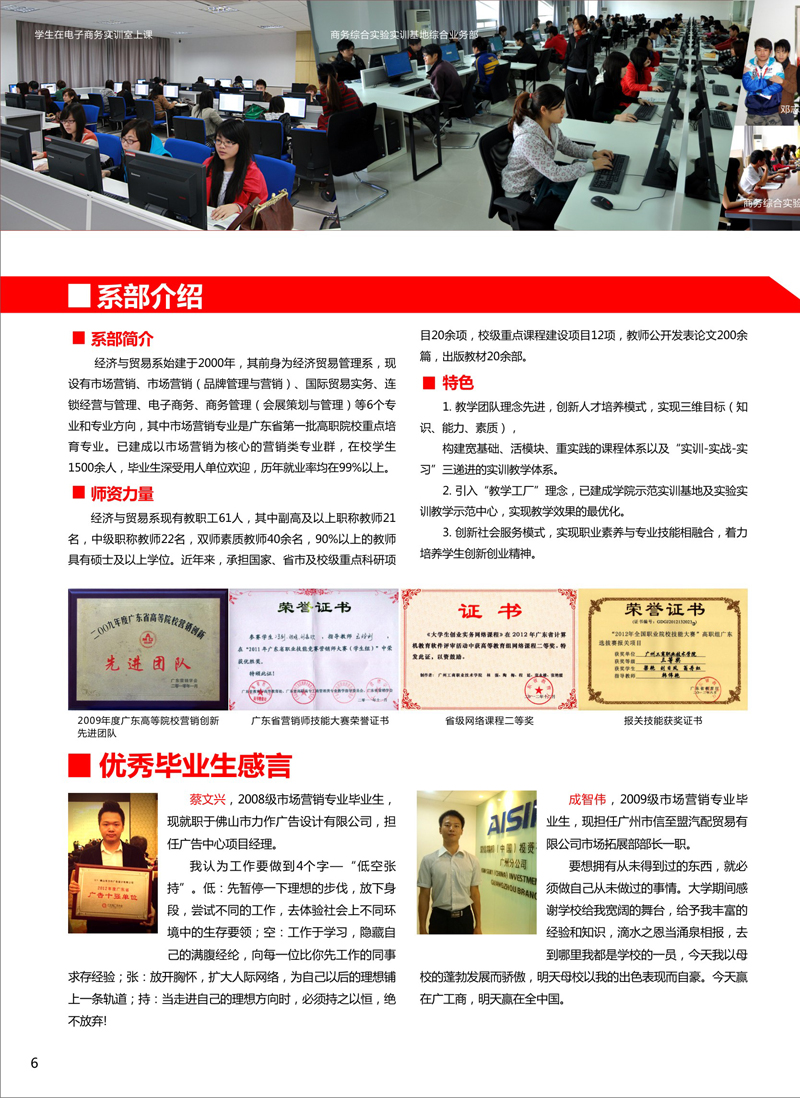 经济与贸易系市场营销专业是2012年广东省第一批省级高职教育重点培育建设专业,在广东省设市场营销专业的高职院校中唯一获此殊荣!经济与贸易系所有专业的学生大学3年全部在广州校区就读。