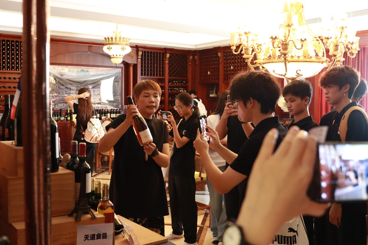 专题培训结束后,全体师生分为四个小组,在企业代表引导下开启沉浸式参观。从彰显企业文化的现代化办公楼,到陈列琳琅满目的专业红酒仓库,从酒香萦绕的静谧地窖,到雅致的小品鉴室,学生们全方位感受产业生态的魅力。