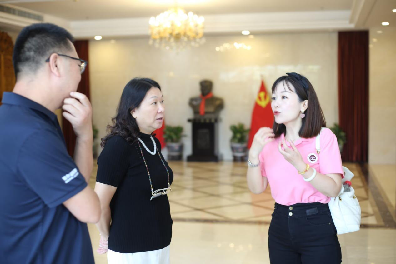 华逸国际曹艳副董事长听取曹明香主任关于此次企业探访培训活动的介绍