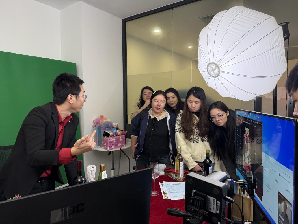 在李斌先生及企业工作人员的引导下,师生们先后参观了公司的直播运营中心、电商实训基地等核心区域。在直播运营中心,同学们近距离观摩了专业直播团队的实时带货全过程,从主播的话术表达、镜头表现到后台运营的实时控场、数据监测,全方位感受直播工作的专业流程,深刻体会到技术赋能对电商运营效率提升的关键作用,纷纷驻足记录、积极交流。