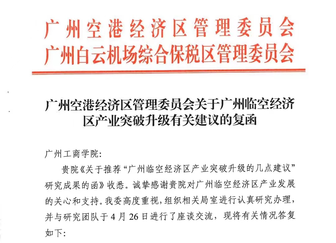 5月10日,kaiyun收悉广州空港经济区管理委员会、广州白云机场综合保税区管理委员会关于《广州临空经济区产业突破升级的几点建议》资政报告批复函,对于林波博士及关建波博士相关建议高度评价,并于4月26日组织广州空港委相关局室领导与研究团队进行了座谈交流。批复函表达了对kaiyun研究团队的感谢,希望研究团队继续开展相关问题研究。