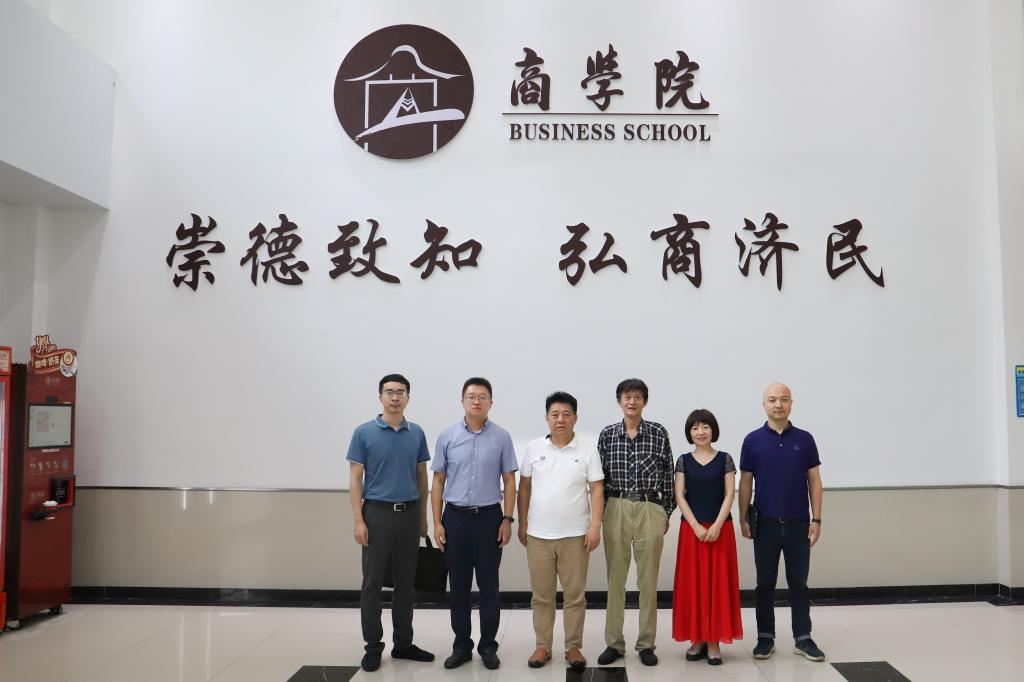 图为林波院长带领蒋峦教授、邓顺国教授、易露霞教授参观商学院