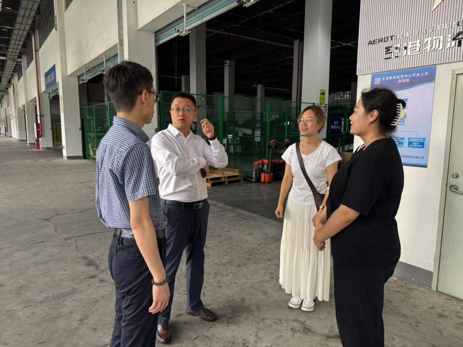 2025年7月2日下午,商学院院长林波、副院长关建波等人前往广州空港物流监管中心,探访在此实习的研究生,深入了解学生实习情况。