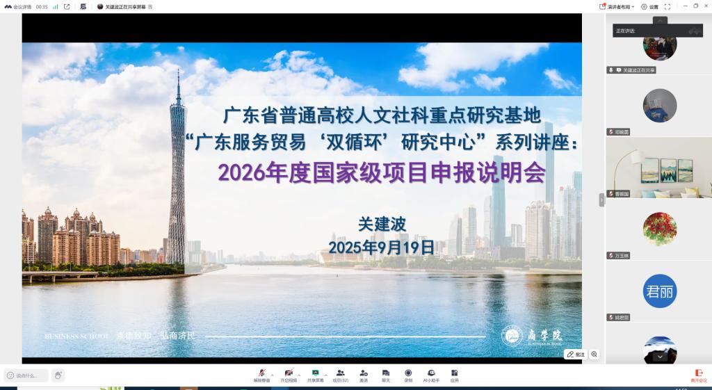 为做好2026年度国家级项目申报的动员工作和申报打磨,商学院于2025年9月19日下午3点举办2026年度国家级项目申报说明会。说明会由商学院关建波副院长主讲。