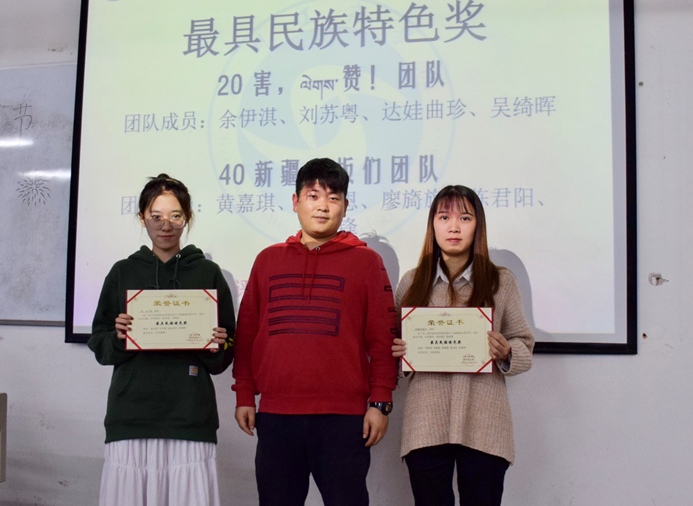 随后是闭幕式的颁奖环节,本次经营节由活动委员会根据各摊位布置、经营情况进行综合评分,评选出“最具商业价值奖”、“独树一帜摊位奖”、“最具民族特色奖”三个奖项。