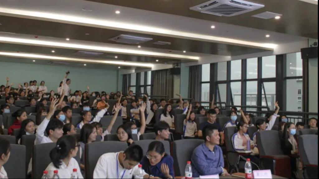 在本次讲座中,除了军旅绑腿教学体验,还有朗诵家书等精彩互动环节。在提问环节时,同学们积极举手回答问题,并对所提问题应答如流。参与互动环节和提问环节的同学们都获得了精美的黄埔军校书籍和纪念品,现场还设置了抽奖环节,分别由三位嘉宾老师抽取了12位幸运观众,他们将作为学生代表前往黄埔军校旧址纪念馆参观学习。