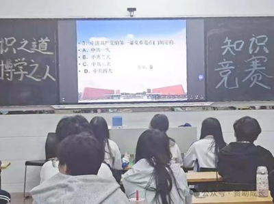 在新时代的征程中,教育被赋予了前所未有的地位,为了响应国家号召,满足学生的学习需求,让我院学子深刻领悟到“学识之道、博学之人”的内涵,也让同学们认识到学习知识的重要性。商学院资助站于12月5日晚上7点,在教学楼111教室举办此次知识竞赛活动。两位主持人面带微笑地走向讲台,声音洪亮且充满活力,她们详细介绍了比赛规则和流程。比赛分为“初露锋芒”、“争分夺秒”、“单枪匹马”及“你画我猜”四个环节。比赛题目涵盖四六级真题、教资考题、公务员行测真题、党史题库四大内容,旨在评测参赛者的学习理解能力、逻辑思维能力、反应敏捷度以及常识积累量。