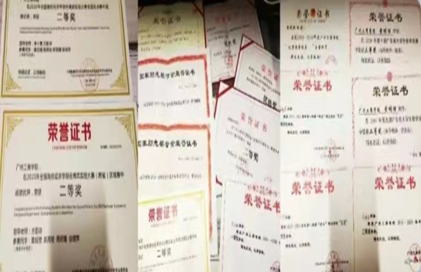 图 2 黄明理同学参加各类数学竞赛的获奖证书