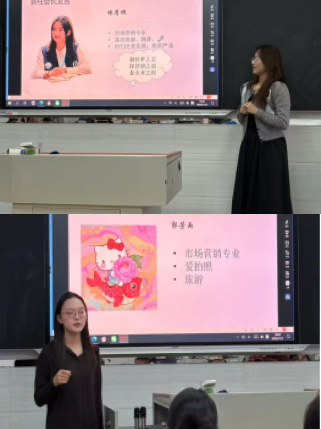 在“干事自我介绍”环节,新加入的各名干事依次分享个人兴趣与职业规划,展现出对市场营销的热情与期待。
