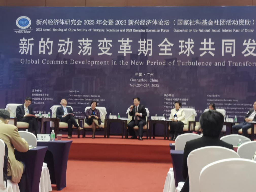 11月25日—26日,“2023年新兴经济体论坛”国际会议在广州白云国际会议中心举行。今年论坛的主题是“新的动荡变革期全球共同发展”。入会专家学者围绕“新兴经济体在新的动荡变化期的团结与合作”“一带一路高质量共同发展”“金砖国家发展繁荣”“去风险与全球双链重构”“数字中国与数字经济合作”“新型全球化与国际规则重塑”“制度型开放与高质量发展”等问题进行了深入讨论。