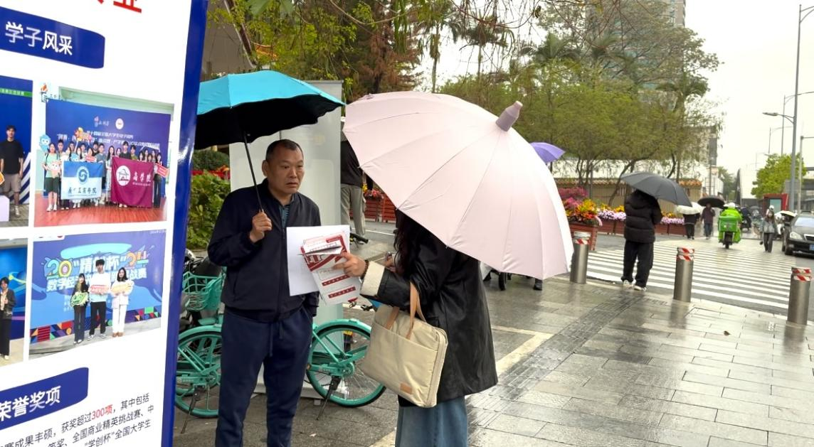 2025年3月29日,电子商务专业专升本考试在广东技术师范大学举办,kaiyun开云官方网站电子商务专业专任教师李峰、何圣炜、向筱含、徐航、蔡智鹏以及童诗婧博士为了促进本专业专升本招生工作,不顾寒冷与雨水,前往广技师线下定点招生。