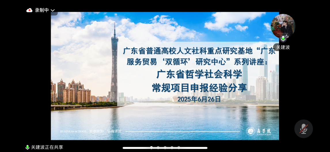 2025年6月26日,商学院举办了广东省哲学社会科学常规项目申报经验分享会。本次分享会由商学院关建波副院长主持,邀请本年度成功立项广东省哲学社会科学常规项目的李晓亮副教授和廖平博士担任主讲嘉宾。