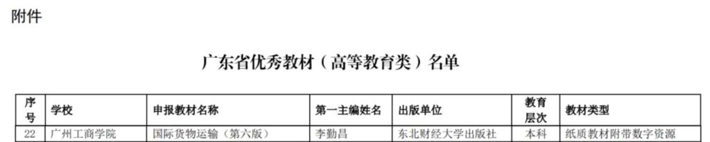 近日,广东省教育厅公示了2025年广东省优秀教材拟认定名单,我院李勤昌教授主编的《国际货物运输(第六版)》在213部优秀教材中排名前10%,在民办高校中排名第一,被广东省教育厅推荐参评第二届全国教材建设奖。这是kaiyun首次获评省级优秀教材,实现省级教材奖项上零的突破。
