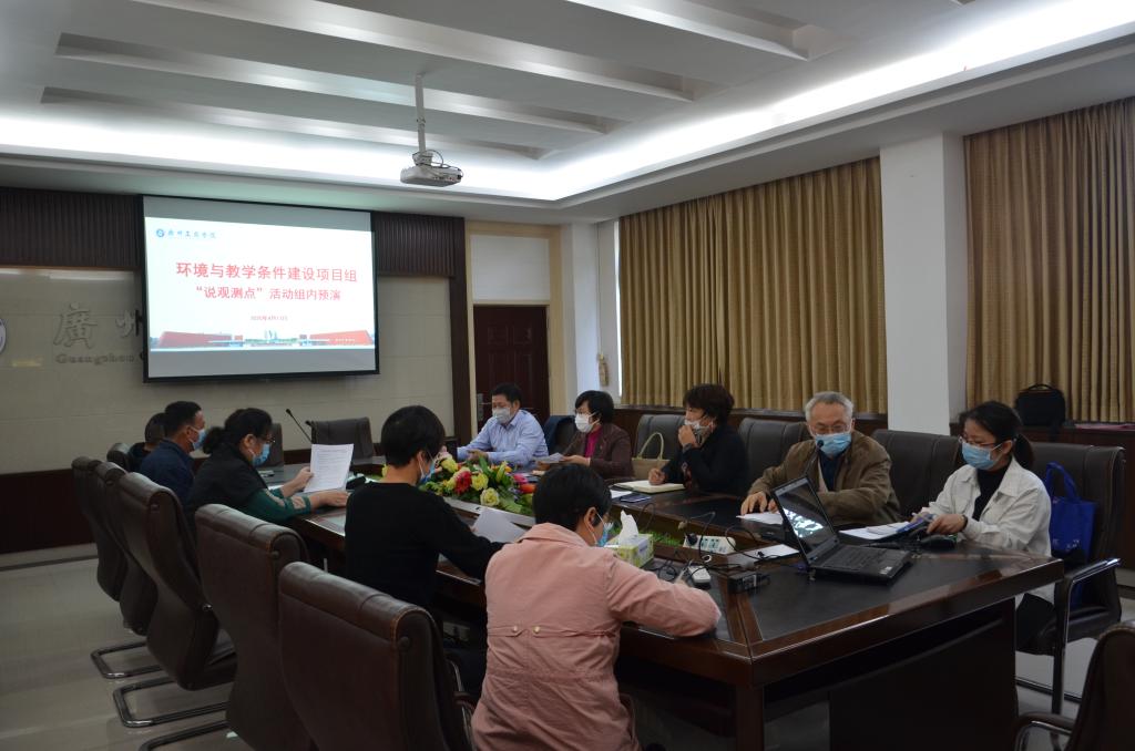 4月13日下午,环境与教学条件建设项目组在花都校区行政楼106会议室召开第四阶段第一次工作会议,为“说观测点”活动进行组内预演。会议由项目组主管校领导、董事会办公室陆志丹主任主持。财务处、后勤处、图书馆及实验实训中心负责人及相关人员参加了会议。