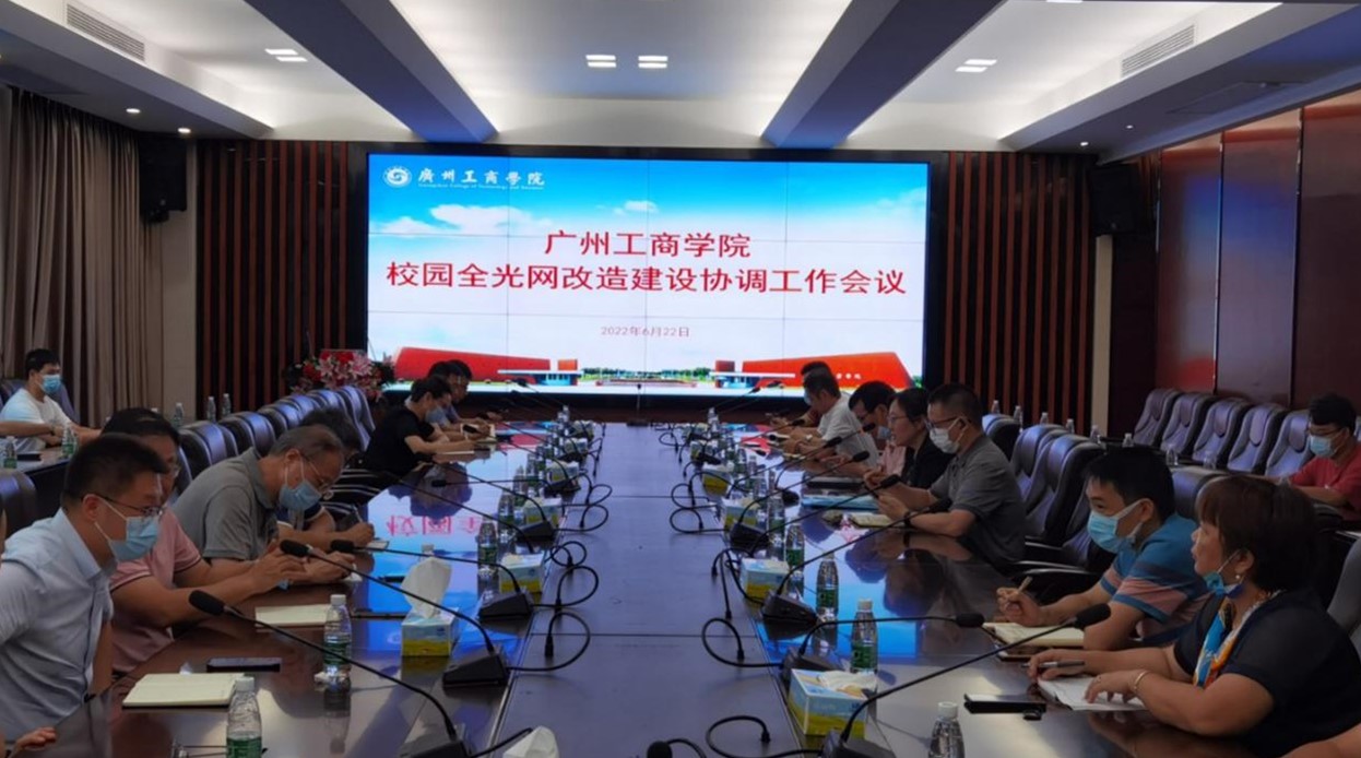 花都电信韦洁鸿经理介绍了全光改造施工安排以及施工期间涉及需要学校配合的相关事项,对升级建设范围、内容进行了详细解读,并与学校办公室、三水校区管委会、建设办、后勤处、学生处等部门就基础设施施工、重点场所以及学生宿舍等相关施工工作进行沟通与协调。