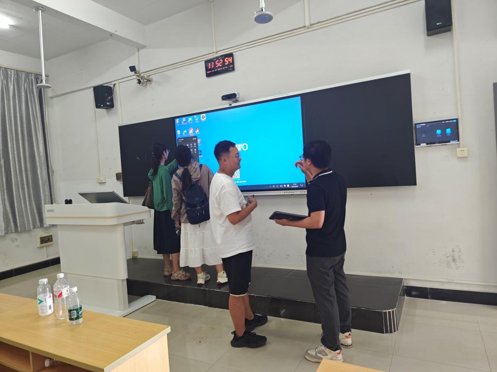 在本次培训中,希沃讲师主要向教师们介绍了智慧教室的功能及课堂环境,并详细演示了智慧黑板、录播系统、智慧讲台等设备软硬件的使用方法。培训会后,中心组织教师到智慧教室进行实操体验与交流,教师通过智慧黑板软硬件平台的使用,使师生课堂互动更为高效。技术人员对教师们在使用过程中遇到的问题进行悉心解答,为教师们上好第一堂课保驾护航。