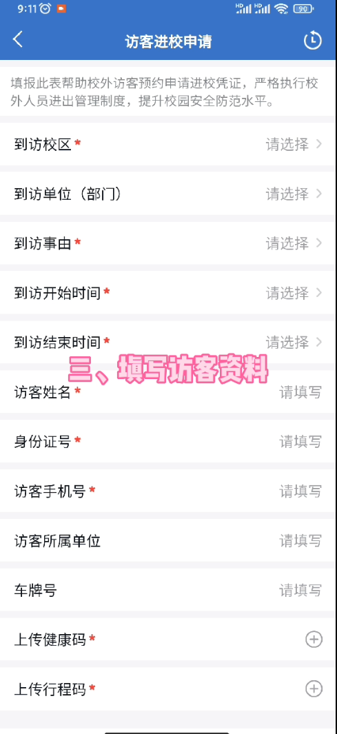 三、填写访客资料