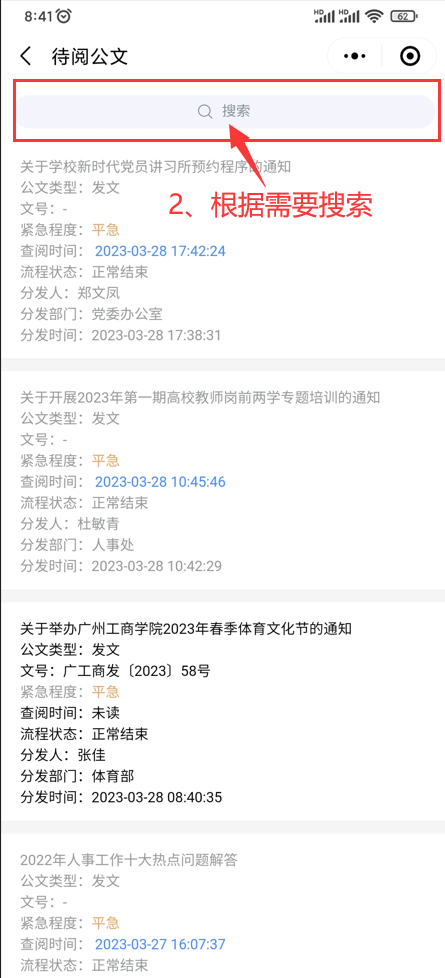 一、如何查找OA公文?