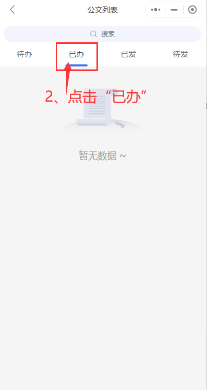 从企业微信-“工作台”进入融合服务门户,点击-“公文待办”图标,点击-“已办”即可查找审批记录,如图所示: