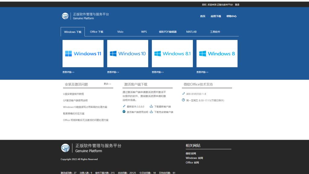 2) 登录成功后,软件自动弹出商品激活管理窗口(Windows和Office默认各分配10次激活次数)