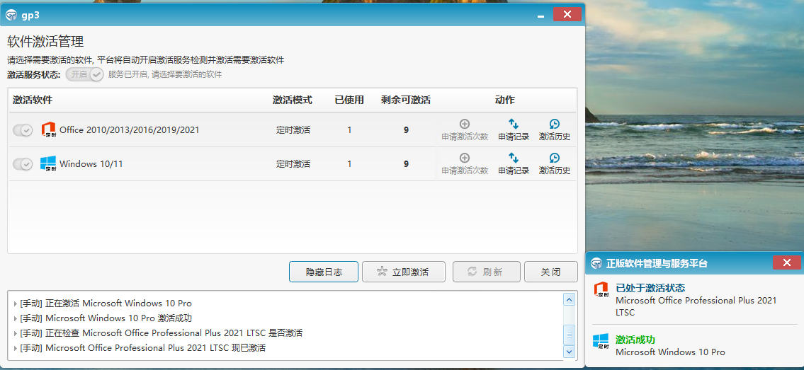 至此,Windows和Office的激活已完成,可以选择卸载或继续保留此激活客户端。