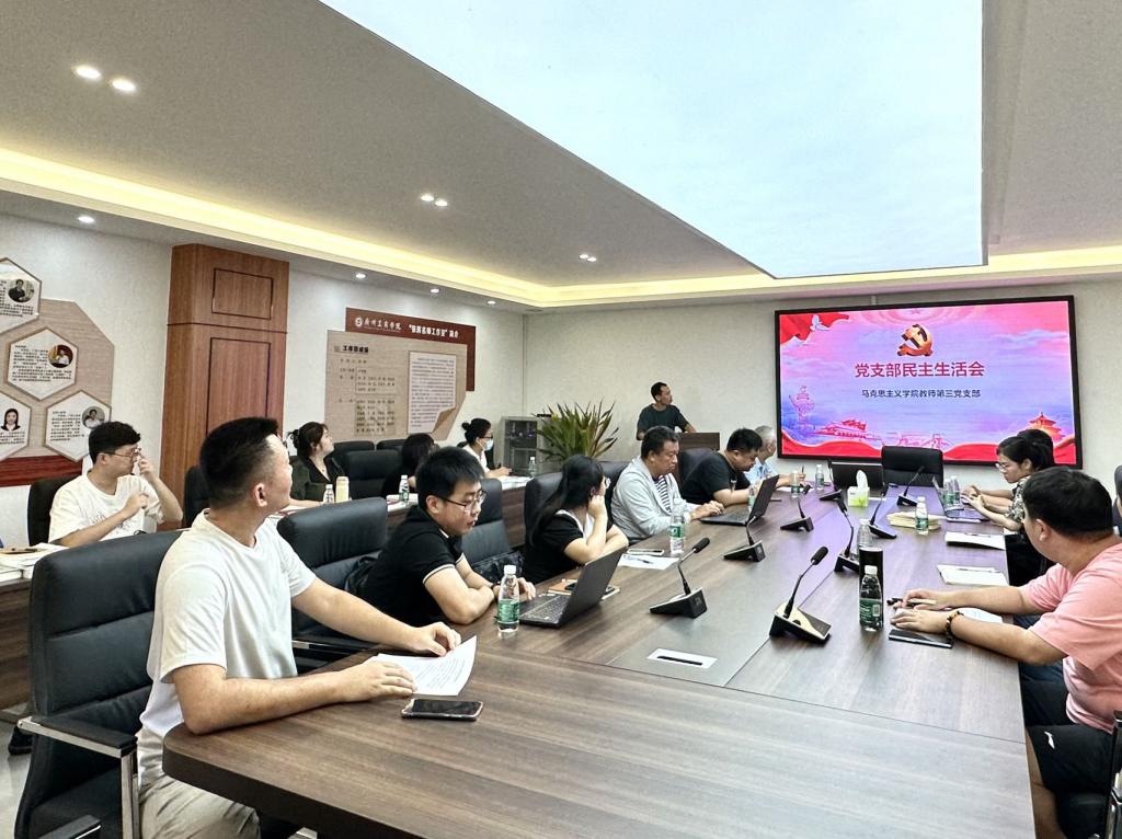 为了深入学习贯彻习近平新时代中国特色社会主义思想和党的二十大精神,严肃党内政治生活,增强党组织活力,严格党员教育管理监督,马克思主义学院教师第三党支部于2023年9月4日下午在三水校区图书馆402张辉名师工作室召开主题教育专题组织生活会。马克思主义学院教师第三党支部的全体党员出席了本次会议,会议由党支部书记蔡宗坚副教授主持。