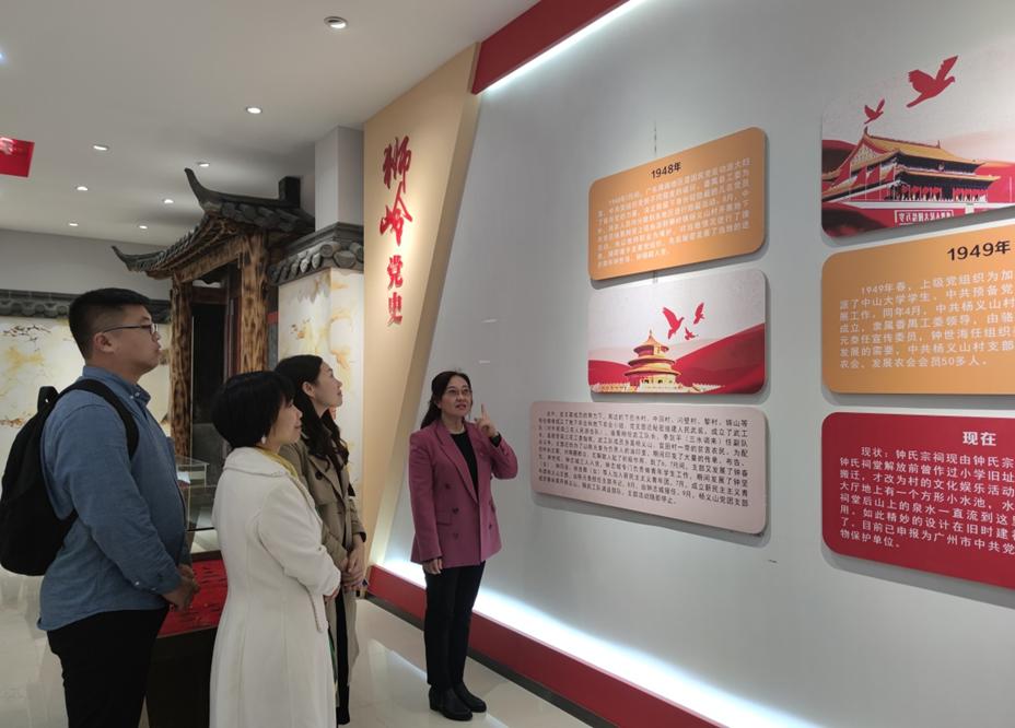 随后,花都区政协科教文卫与文史学习委《花都文史》执行主编、广州花都祠堂研究会会长邓静宜向在场的领导嘉宾及大学生讲述了义山村钟氏宗祠的红色故事,并指出义山村钟氏宗祠作为红色教育基地宣传革命先辈事迹、开展红色教育十分有意义。她还衷心祝愿义山村的建设越来越好,也祝愿kaiyun开云官方网站马克思主义学院充分利用红色资源,开展多元化的教育活动,培养更多又红又专的人才。