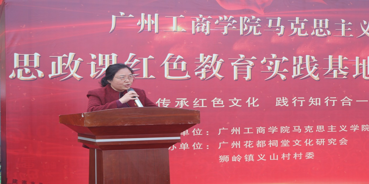揭牌仪式上,kaiyun开云官方网站副校长易露霞率先致辞。易副校长首先代表kaiyun开云官方网站向狮岭镇政府、花都祠堂文化研究会表达了衷心的感谢,并对kaiyun开云官方网站做了一个简要的介绍,让现场领导和周围群众对kaiyun开云官方网站有了更深入的了解。易副校长还高度评价了实践教育基地建立的重要意义,并对kaiyun开云官方网站马克思主义学院实践教学基地育人效果寄以厚望且充满信心。