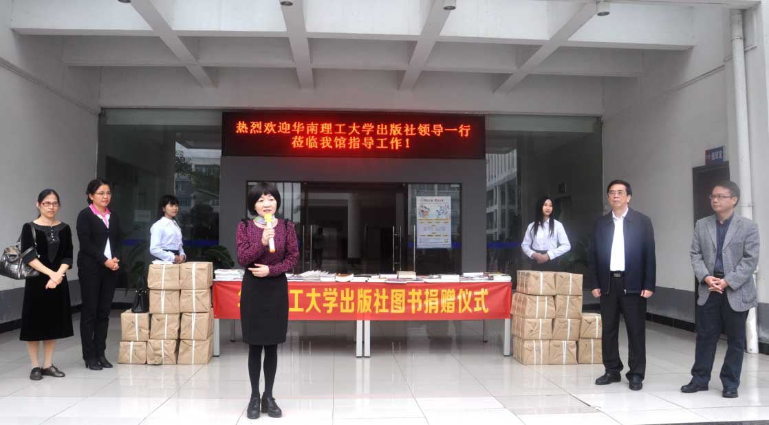 【本讯网】捐一册图书,留一份真情!爱心捐赠,情暖校园。11月17日上午,在三水校区图书馆一楼正门前举行华南理工大学出版社图书捐赠仪式。华南理工大学出版社柯宁副社长,销售中心范亚玲总经理和大学城分社朱彩翩编辑等一行4人专程来到我院,向我院图书馆无偿赠送该出版社出版的图书1000余册。邝邦洪院长非常重视此次活动,并给予大力支持,易露霞副院长、三水校区管委会何国林主任、图书馆熊家良馆长、工商系石丽明主任等也一同出席。