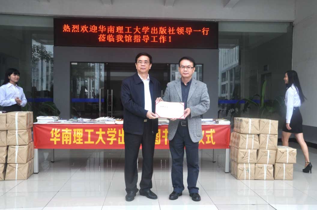 在捐赠仪式上,易副院长首先代表学院向华南理工大学出版社给予我院的大力支持和帮助表示感谢,简要介绍了我院近年来的建设情况以及未来的发展远景,表示愿与华工出版社建立更加紧密的联系,携手合作,共同发展。