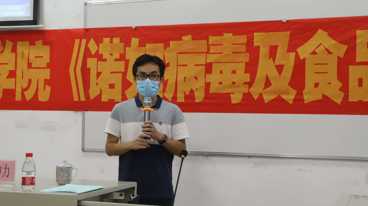 李坤力副主任以深入浅出的方式对诺如病毒做了详细介绍,重点从诺如病毒疾病概述、防控措施两个方面展开。他还特别强调这种病毒具有快速、高度的传染性,它可以通过污染的食物、水等途径传播,只要呼吸到呕吐物的气溶胶,就能造成感染。且目前的细胞培养方法尚不成熟,所以针对诺如病毒还没有疫苗及有效治疗药物,对于疫情的防控需要引起高度重视。除此之外,他针对预防诺如病毒这一问题,分别从病例管理、食品卫生管理、水卫生管理、环境消毒等方面提出措施与建议,并表示防控工作要坚持预防为主,防患于未然。最后,他再次强调了做好新型冠状病毒防控的重要性,并提到近期是秋季传染病高发期,多地出现了诺如病毒感染现象,他提醒同学们在日常生活中应养成良好的卫生习惯,做好疾病预防工作。