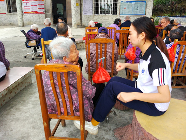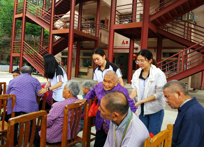 志愿者们为敬老院的老人送上爱心蛋糕,为老人献上精彩的节目,与老人畅谈革命史、年轻时的故事甚至生活中的柴米油盐。时光虽短暂,但对老人来说却不失快乐,一句温暖的问候胜过简单的给予。