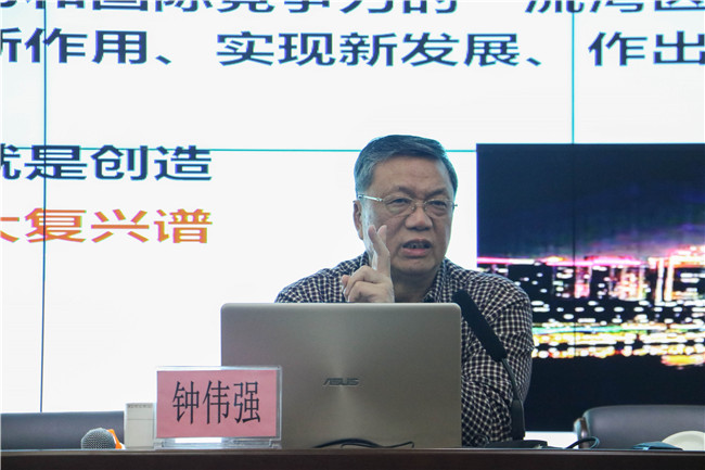 讲座期间,钟伟强书记就五方面全面深入地解析了《粤港澳大湾区发展规划纲要》的重要内容。五个方面包括:关于《粤港澳大湾区发展规划纲要》、广东省提出 2035年将粤港澳大湾区全面建成国际一流湾区、《粤港澳大湾区发展规划纲要》对教育的影响、粤港澳三地合作历来友好、我们高校要做好大湾区建设这篇大文章。他指出,《粤港澳大湾区发展规划纲要》是由习近平总书记亲自谋划、亲自部署、亲自推动的国家战略,也是推动“一国两制”事业发展的新实践。