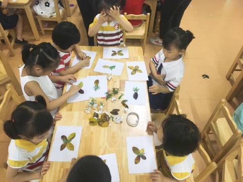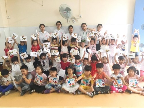 活动当天阳光普照,准备充分的志愿者们带着激动期待的心情来到了明珠幼儿园。一进门,小朋友们热情欢迎志愿者们。在活跃的气氛下,志愿者们开始了本次的叶子贴画手工制作课程。拿到叶子的小朋友迫不及待地将它们贴上了白纸,两片原本毫无关联的叶子,在小朋友的手下变成了小鱼儿。即使是复杂的蝴蝶形状的贴画,小朋友们也能够动手出色地完成。小朋友们从活泼好动转换成认真细致地制作叶子贴画的状态,让志愿者们感到很欣慰。完成了漂亮的作品的他们,绽放了最真挚的笑容,一起和志愿者们留下珍贵的合照。
