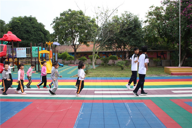 义教活动中,志愿者们带着小朋友们进行热身舞蹈,小朋友们很配合志愿者,跟着志愿者们完成一个个热身舞蹈动作。热身过后,志愿者们教小朋友们正确的起跑姿势,小朋友们认真学习,志愿者们也耐心地去纠正小朋友们的起跑错姿,引导小朋友们做出正确的起跑姿势。最后,志愿者们与小朋友们进行了“狐狸抓小鸡”游戏以及“接力跑”体育项目。
