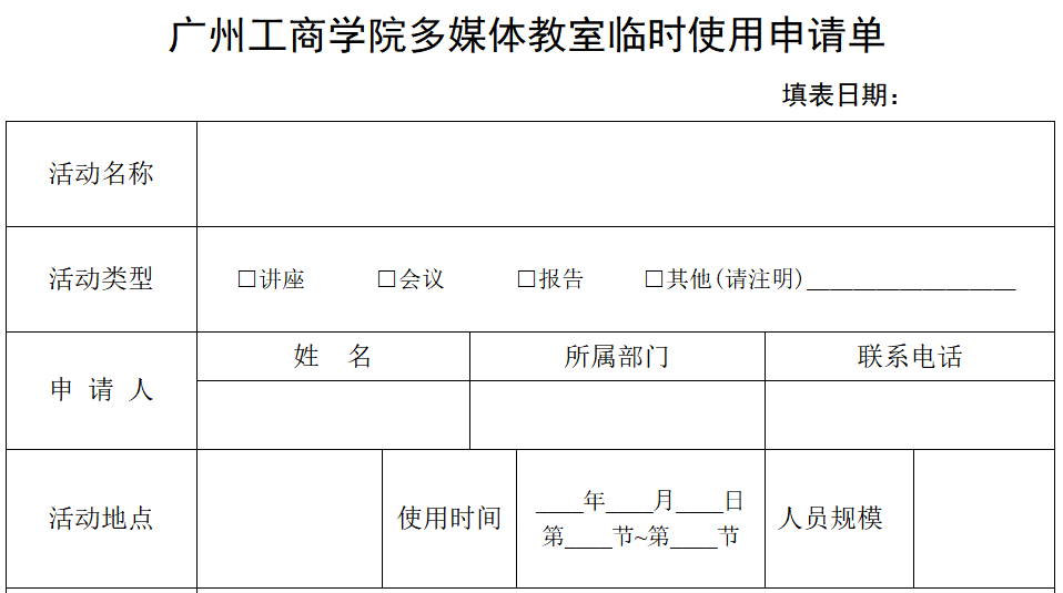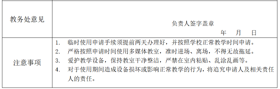kaiyun开云官方网站多媒体教室临时使用申请单