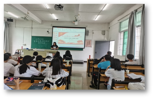 【本网讯】为进一步引领和学习习近平总书记重要讲话精神,坚持将社会主义核心价值观和党章贯彻到团学思想引领工作中,扎实推进“五进”活动。号召班级团员行动起来,影响和带动周围同学积极向上,团结进取,为党旗增辉,为党徽添彩。5月10日,20级食品质量与安全B3班在学校第一教学楼C405以及图书馆党史学习教育讲习所开展了“青春向党,奋斗强国”主题团日活动。