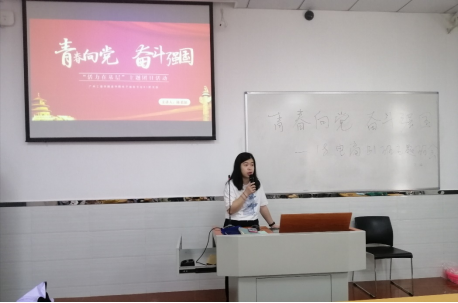 2021年4月15日上午,18级电子商务B1班在教学楼111课室举行了大三学年第二学期的第一次班会,班会的主题为青春向党,奋斗强国。参与本次班会的有:18电商B1班的全体同学及辅导员黎晓琪老师。