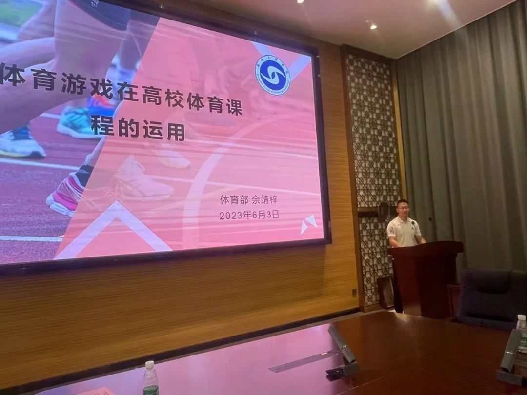 最后,余靖梓老师以《体育游戏在高校体育课程中的运用》为专题,梳理分析了体育游戏的作用及典型案例,并用视频向老师们展示了目前国际上流行的体育游戏。通过余老师的分享,教师们意识到体育游戏作为一种教学载体,不仅可以激发学生的学习兴趣、提高学生的身体素质,还能培养学生的规则意识,是需要不断探究的重要教学方法。