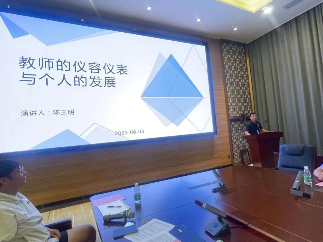 研讨会第四个议程由青年教师陈王明进行《教师的仪容仪表与个人发展》专题讲座。他结合亲身教学经历分享了教师教态的影响、教师仪容仪表的重要性、教师仪容仪表和教态的培养四方面内容,语言幽默风趣,内容十分立体,使每位教师特别是青年教师充分意识到仪容仪表对于教学效果、师生关系、学生学习兴趣等方面具有重要的影响。