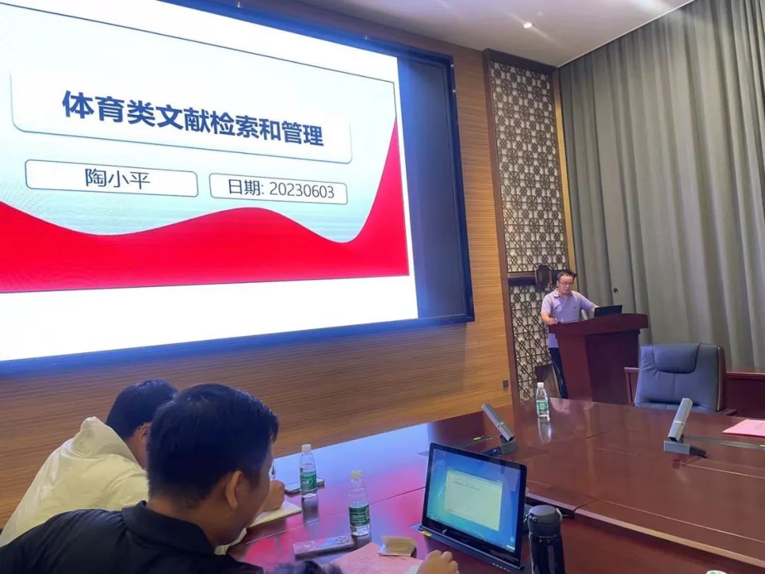 随后,陶小平博士以《体育类文献检索和管理》为专题,结合自己在科研工作中的经验累积,向青年教师分享了学术研究基础工作中的文献检索途径、文献检索方法以及文献笔记的记录,同时对多个文献管理工具的使用方法加以详尽地讲解说明,使得每位老师今后的科研工作能够更有抓手,更具深度。